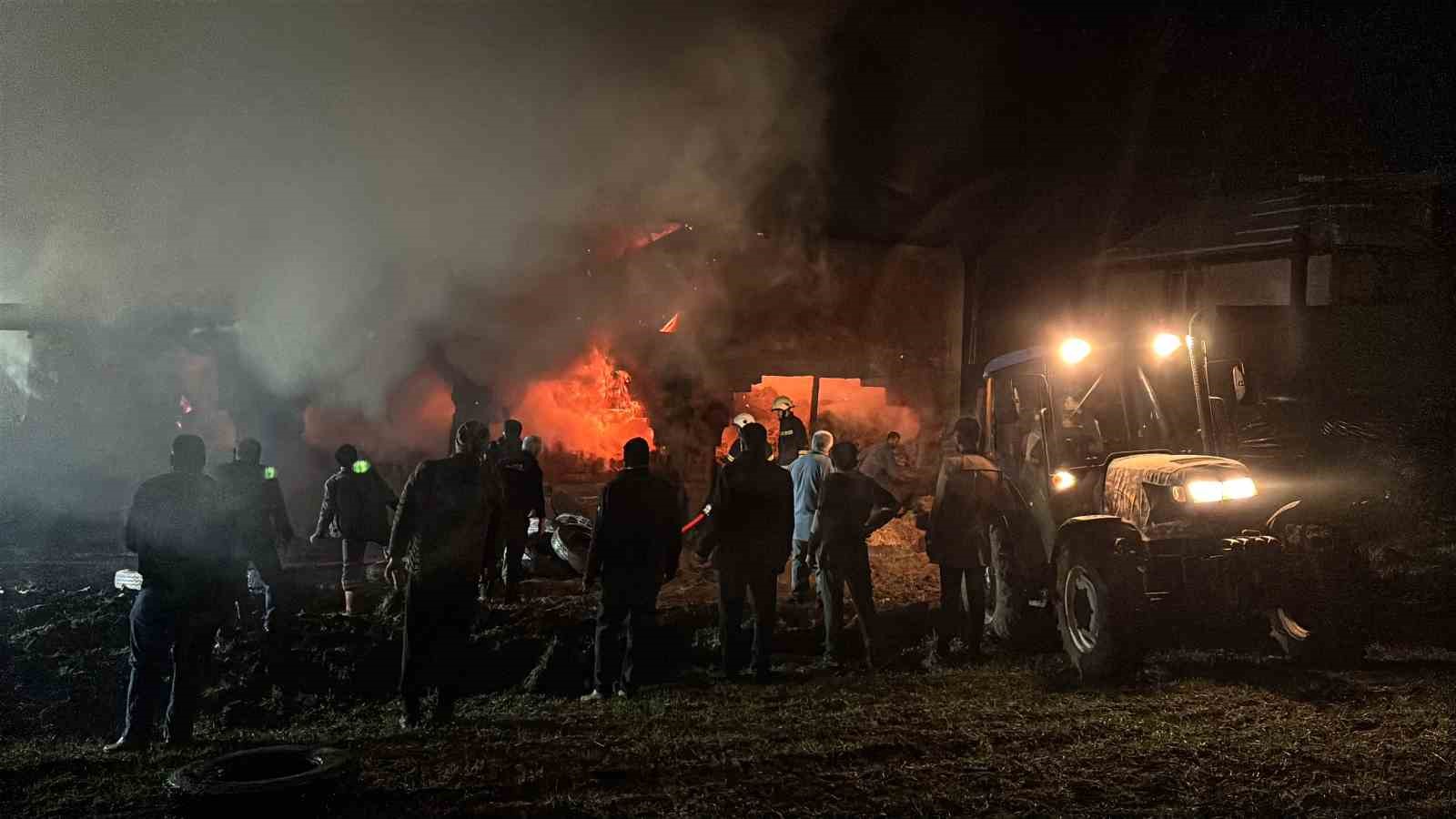 Bolu’da gece saatlerinde elektrik kablolarından kaynaklı çıktığı düşünülen yangında ahır ve samanlık alev alev yandı.