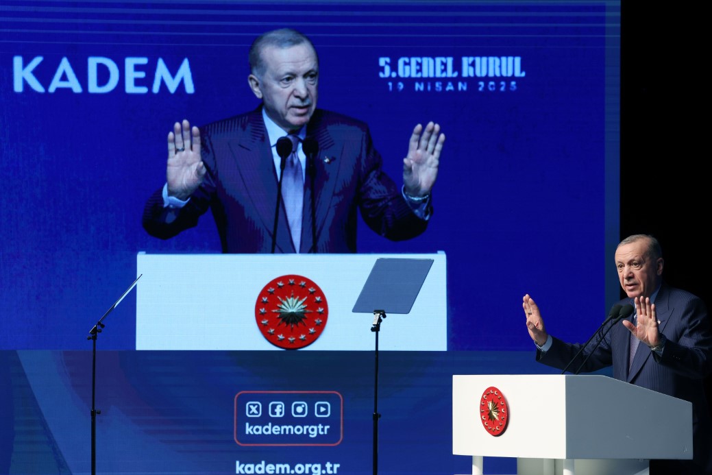 Cumhurbaşkanı Recep Tayyip Erdoğan, Atatürk Kültür Merkezi’nde gerçekleştirilen Kadın ve Demokrasi Derneği (KADEM) 5. Olağan Genel Kurulu’na katıldı. Cumhurbaşkanı Erdoğan, yaptığı konuşmada derneğin 5. Olağan Genel Kurulu’nun Türkiye’ye, millete ve özellikle de kadınlara hayırlar getirmesini diledi. Erdoğan, kuruluşundan bugüne KADEM çatısı altında kadınların haklarının korunması ve demokrasinin geliştirilmesi konusunda emek veren herkese teşekkür ederek, "Hep olduğu gibi bundan sonra da hayra destek, şerre engel olmaya matuf tüm çabalarınızda yanınızda olmayı, sizlere her türlü desteği vermeyi sürdüreceğiz. KADEM, ülkemizin iki önemli meselesini aynı çatı altında buluşturarak, aslında konumuzun insanın bizatihi kendisi olduğunu ortaya koymak suretiyle, hayırlı bir görevi yerine getirmektedir. Fıtraten kadın ve erkekten oluşan insanı ayrıştırarak, birbirine rakip ve hatta düşman yapma, birbiriyle çatıştırma zihniyeti, bizim medeniyetimize ait değildir. Kadını ve erkeği karşı karşıya getiren anlayış, asırlarca yönünü şaşırmış bir vaziyette, insanlığa en karanlık deneyimleri yaşatan Batı’ya aittir. Bu müflis ve müfsit zihniyet, daha bir-iki asır öncesine, hatta 1960’lı, 1970’li yıllara kadar devam eden utanç tablolarını örtmek için, kendine sahte bir tarih inşa etmeyi başarmıştır. Evet, ülke olarak biz de işte bu sahte ama parıltılı, içinde yine istismarı barındıran ama hak, özgürlük, eşitlik ambalajıyla reklamı yapılan bu çarpık demokrasi anlayışının albenisine, uzunca bir süre, ne yazık ki kapıldık. Bunun da sıkıntılarını çok farklı alanlarda yaşadık. Halen de yaşıyoruz. 18 aydır Gazze’de devam eden soykırım başta olmak üzere, son dönemde yaşanan hadiseler, Batı değerleri denilen kavramların aslında içlerinin ne kadar boş olduğunu hepimize göstermiştir" ifadelerini kullandı.
