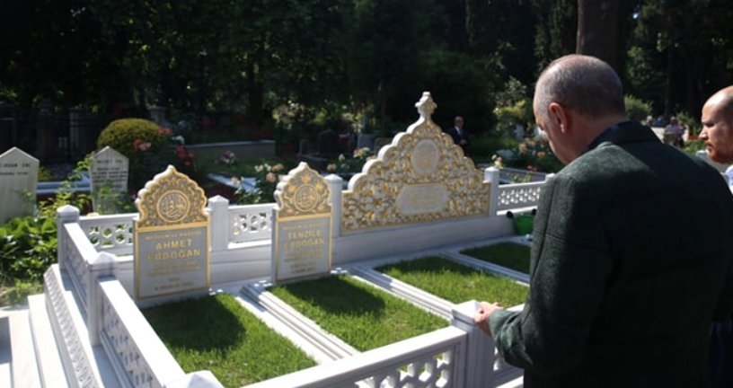 Ramazan Bayramı'nı İstanbul'da geçiren Cumhurbaşkanı Recep Tayyip Erdoğan, Üsküdar Kısıklı'daki konutundan Karacaahmet Mezarlığı'na geldi. Cumhurbaşkanı Erdoğan, oğlu Bilal Erdoğan ile birlikte annesi Tenzile ve babası Ahmet Erdoğan'ın mezarlarını ziyaret ederek, dua okudu. Karacaahmet Mezarlığı'ndaki Şakirin Camisi'nde cenaze namazı için bulunan vatandaşlarla sohbet ederek başsağlığı dileyen Erdoğan, daha sonra Erol ve oğlu Abdullah Tayyip Olçok'un mezarlarını ziyaret ederek, dua okudu.