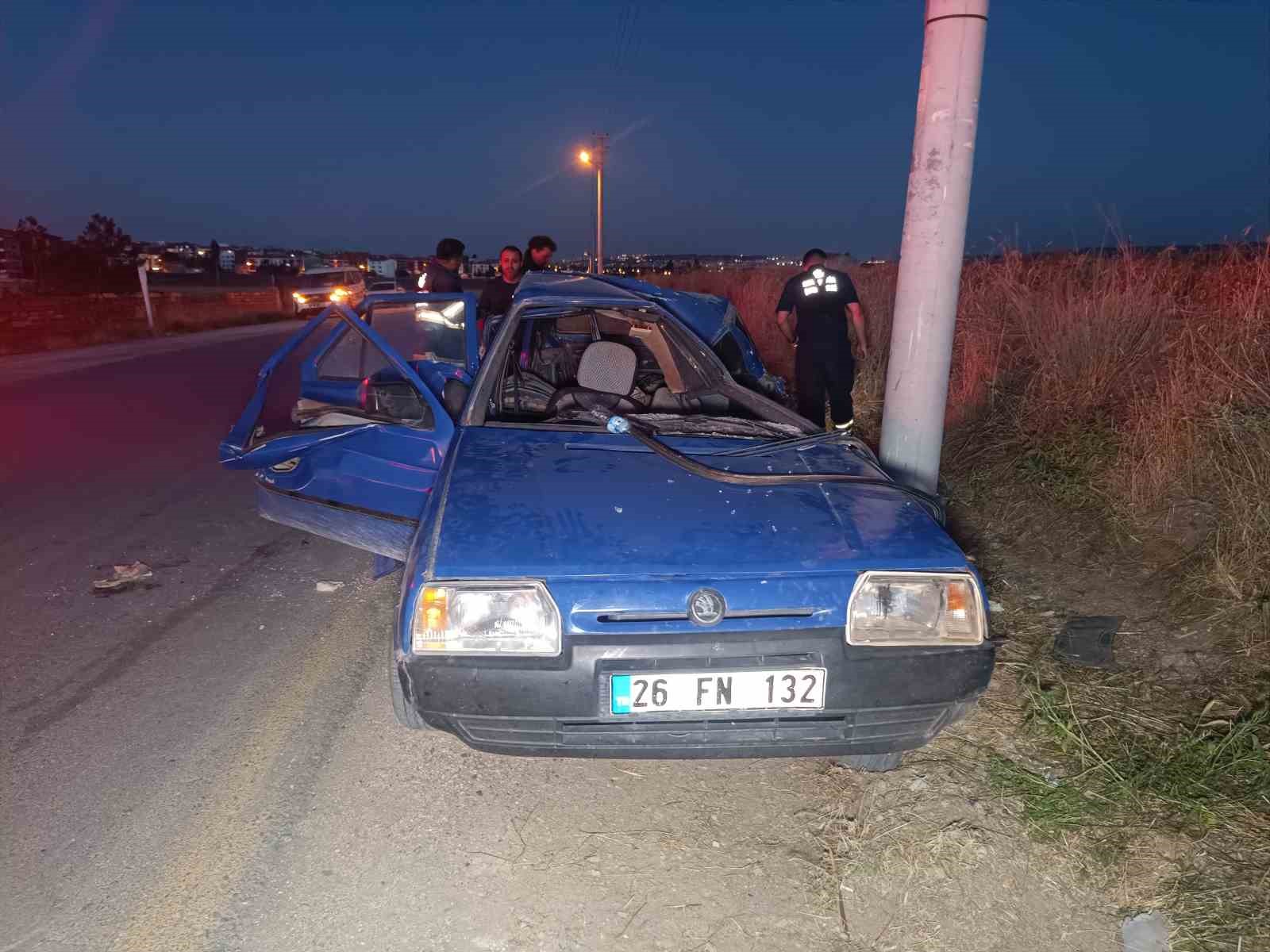 Kaza, saat 20.20 sıralarında Çamlıca Mahallesi Akdut Sokak’ta meydana geldi. Edinilen bilgilere göre, Karagözler Mahallesi’ne doğru yüksek hızla seyir halindeki Ö.Ç. (59), idaresindeki 26 FN 132 plakalı otomobilin direksiyon hakimiyetini kaybetti. Kontrolden çıkan otomobil aydınlatma direğine çarptı. Defalarca takla atan otomobil hurdaya döndü.