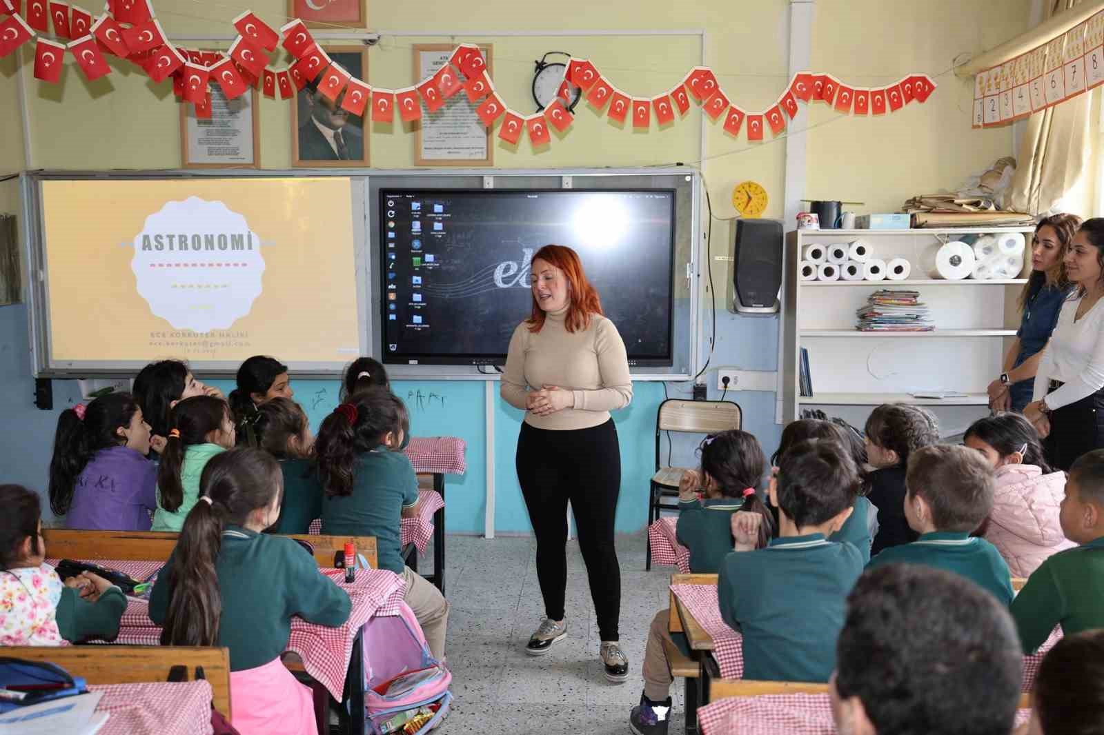Astronom Ece Korkuter Haliki, öğrencilere uzayın keşfedilen ve keşfedilmeyi bekleyen yönlerini anlattı. Tarih boyunca medeniyetlerin gökyüzünü tanımasının sağladığı faydaları aktaran Haliki, bilginin kanıtlanması gerektiğine dikkat çekerek Dünya’nın küre olduğuna dair bilimsel kanıtları paylaştı.