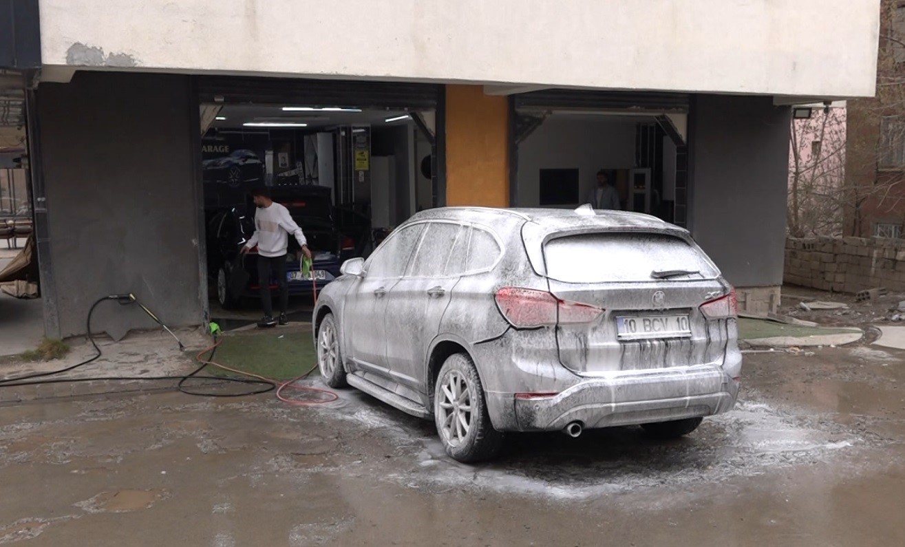 Muş’ta çamur yağışı sonrası oto yıkamacılarda yoğunluk oluştu.