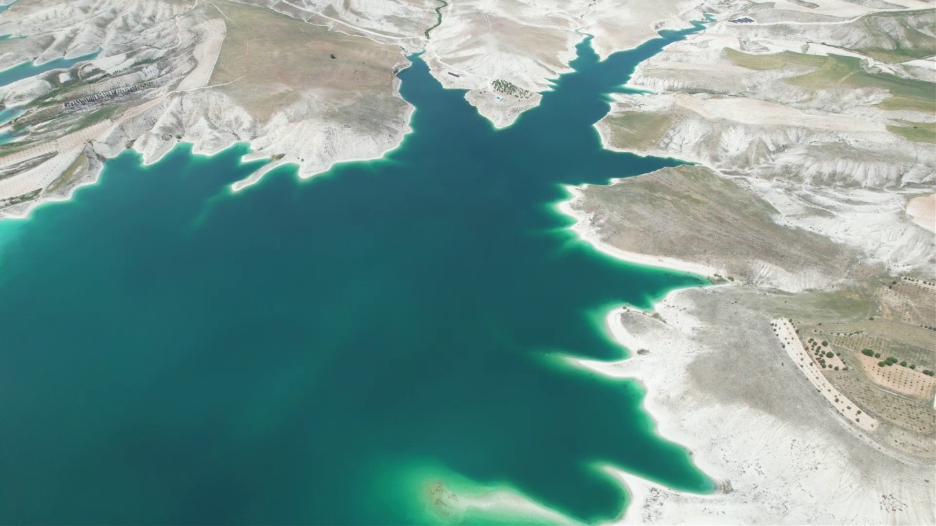 Yeşil ve mavi renkli gölü ve beyaz sahili ile Maldiv adalarını anımsatan Atatürk Barajı, yaz aylarında göz alçı güzelliği ile dikkat çekiyor.