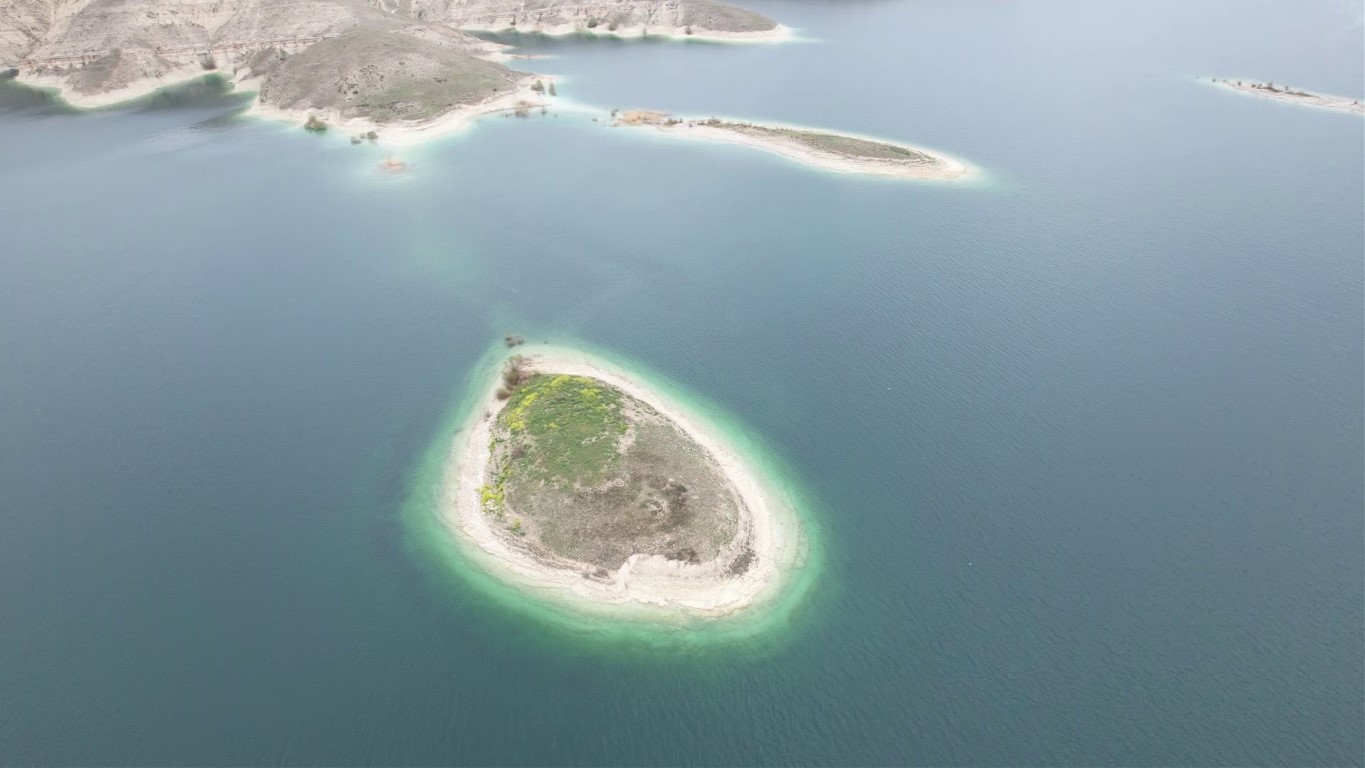 Türkiye’nin Maldivleri olarak bilinin Atatürk Barajı’nda ki adalar, yarım adalar ve bembeyaz kıyıların büyüleyici güzelliği dron kamerasıyla gözler önüne seriliyor. Mavi, yeşil ve beyazın muhteşem uyumunun yansıdığı kamere görüntülerinde, suyla toprağın buluşması adeta resmediliyor. Adalarda açan çiçekler ise görsel bir şölen sunuyor.