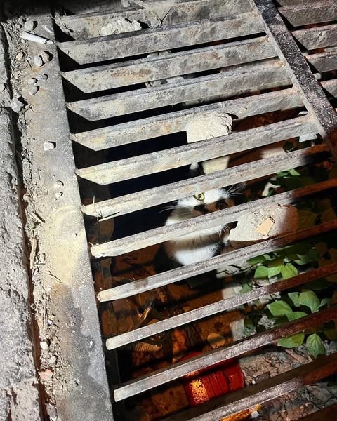 Hatay’da yağmur suyu mazgalına sıkışan kedi itfaiye ekipleri tarafından kurtarıldı.