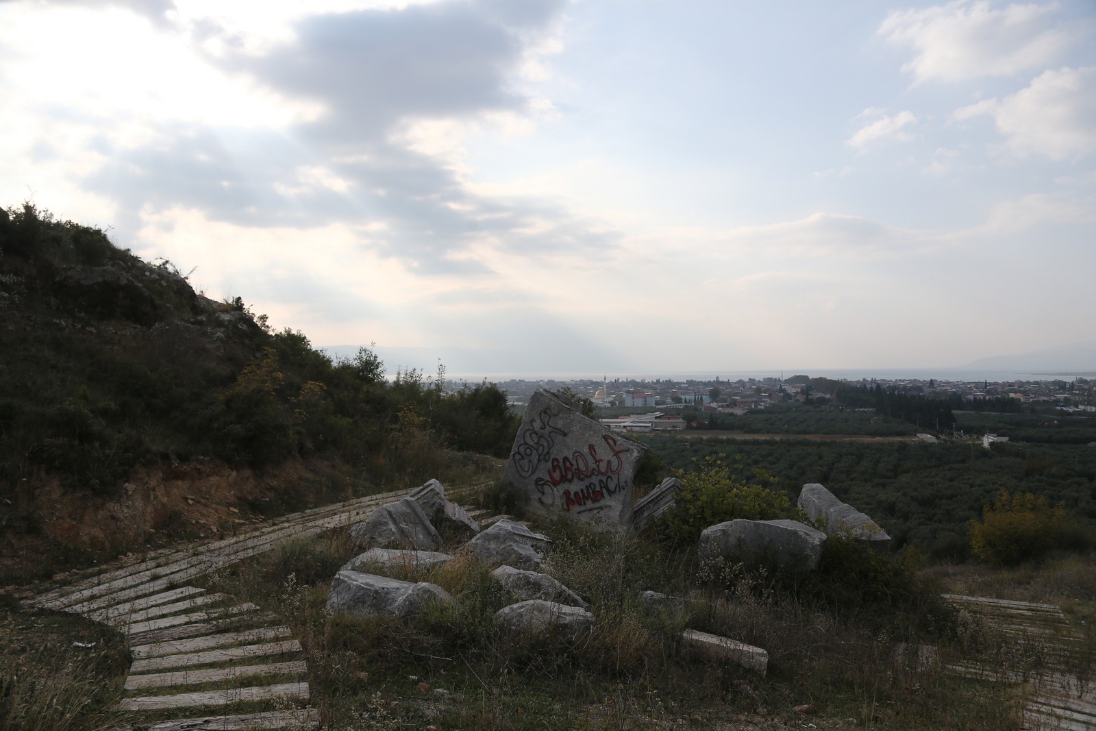 Bursa'nın İznik ilçesinde 2200 yıl öncesine ait kral mezarı mezbeleliğe döndü. Nakil sırasında düşerek kırılan lahdin üzerine sprey boyalarla yazılar yazıldı.