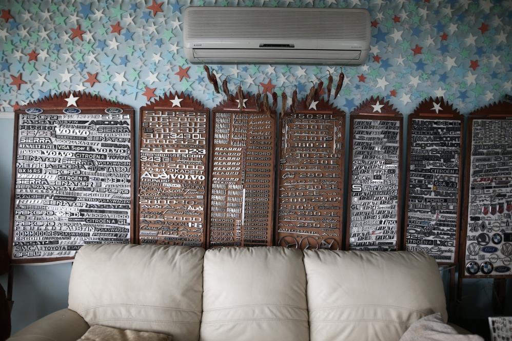 Otomobillere ayrı bir tutkusu olan 79 yaşındaki Süleyman Şahin, araçların logo ve modellerine ait amblemleri biriktirmeye başladı. 1980 senesinden bu yana topladığı amblemlerle ilginç bir koleksiyona imza atan Şahin, ayrıca topladığı ampullerle de dikkat çekiyor. Almanya'da hafta sonları hurdaya ayrılan arabaların sağlam parçalarını söküp hurdacıya sattığını ifade eden Şahin, “Bu markaları o zamanlar toplamaya başladım. Almanya'dan her gelişimde getirdim.