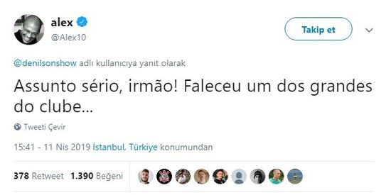 Brezilyalı eski oyuncu Denilson ise Alex'in tweetine esprili bir cevap verdi. Alex, Denilson'un tweetinin ardından eski takım arkadaşına ''Ciddi bir mesele bu kardeşim! Kulübün en büyük efsanelerinden birisi hayatını kaybetti...'' yazdı.