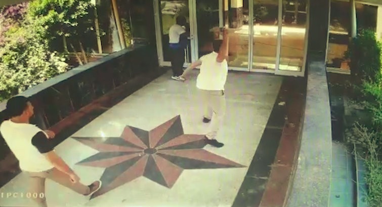Oteldeki saldırı anı güvenlik kameralarına da yansıdı. Görüntülerde 6 kişinin önce tel örgülerden otel içerisine girdiği, ardından otel girişinde cam kapıyı taşladıkları görülüyor. Kapıyı açamayan gruptan bir kişi ise öfkelenerek kapıyı tekmeleyeme, ardından kırarak parçalamaya başlıyor. Elinde tahra olan bir kişinin de kapının kırılan camlarını parçalamaya devam ettiği görülüyor. Ardından içeriye giren grup, otel personellerinden birini darp ederek, kadın bir personeli de tahra ile tehdit edip dışarı çıkarıyor.