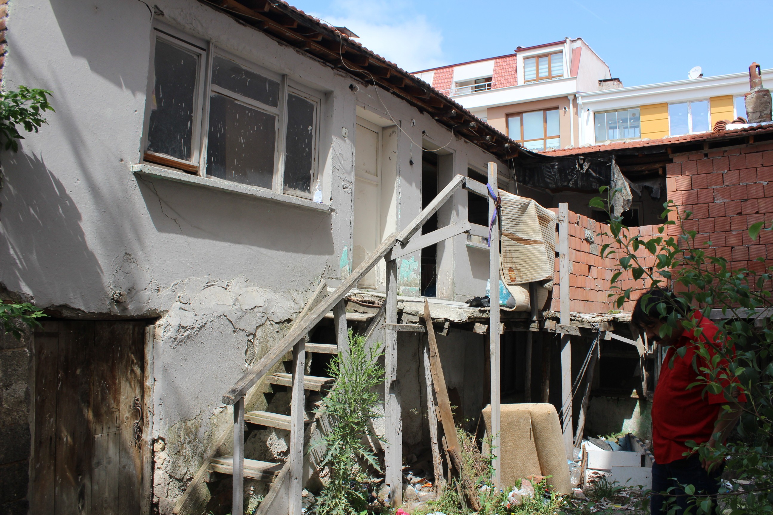 Yaşadıkları hayatı anlatan 64 yaşındaki baba Fehmi Özden, “Ben buradaki balkondan düştüm ve kalçam kırıldı. Tansiyon ilacımı içmemiştim. Ben de oradan cambaz gibi atlayıp geçiyordum. Ayağım takıldı ve düştüm. Oğlum hastaneye götürmüş. Ameliyata girmişim ama ben hiç hatırlamıyorum tabii. Sonra huzurevine gönderdiler bizi. Orada üç ay kaldım. Yaz aylarında suyu balkona koyuyoruz. O su ısınıyor ve akşam da duş alıyoruz” ifadelerini kullandı.