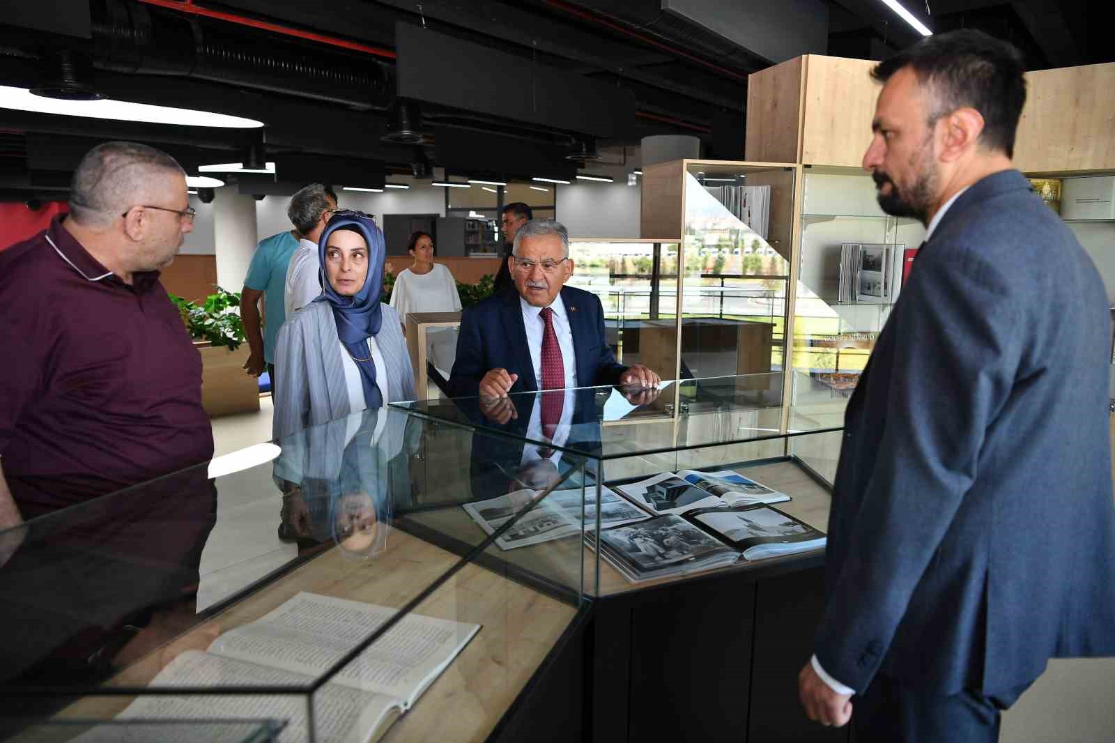 Başkan Büyükkılıç, Kayseri Büyükşehir Belediyesi’nin yapımını gerçekleştirdiği ve Kültür ve Turizm Bakanlığı’nın iç donatımı ve hizmetin sunumu konusunda destek verdiği Recep Tayyip Erdoğan Millet Bahçesi içerisinde inşa edilen 6 bin 100 metrekarelik İl Halk Kütüphanesi’nde incelemelerde bulundu.