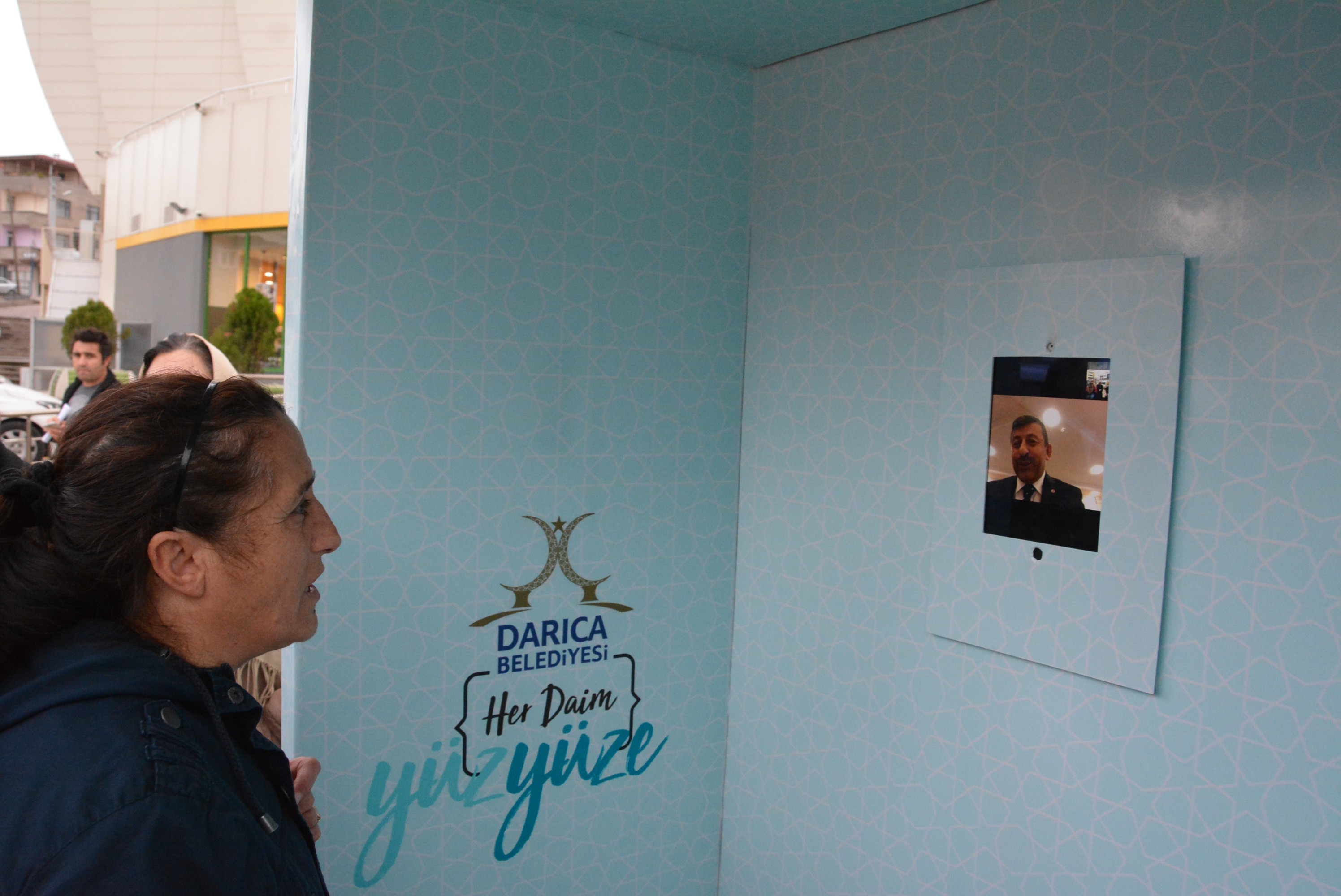 Darıca Belediyesi’nin hayata geçirdiği “Her Daim Yüz Yüze” projesi kapsamında vatandaşlar değişik mahallelere kurulan ekranlara kişisel bilgilerini yazıp daha sonra kayıt butonuna basarak Başkan Karabacak’la canlı bağlantı yapıyorlar. Proje kapsamında mahallelere kurulan ekranlardan vatandaşlarla hasbihal eden Başkan Karabacak, teknolojinin imkanlarından faydalanarak ilçe halkıyla farklı bir mecrada yüz yüze görüşmenin mutluluğunu yaşadıklarını ifade etti.