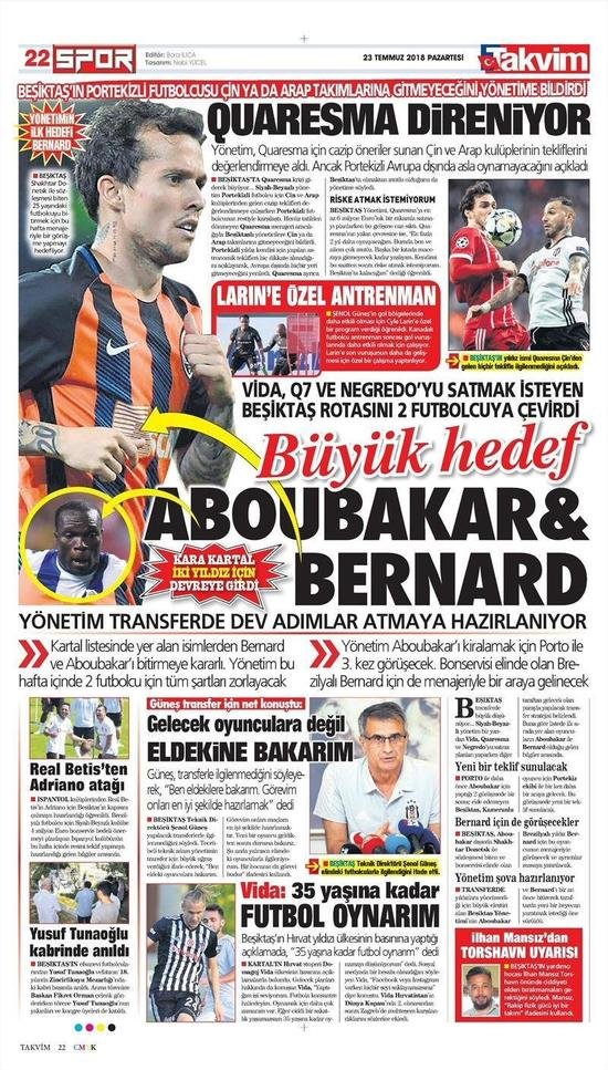 Transferde yıldızlara yönelmediği için büyük eleştiri alan Beşiktaş Yönetimi'nin Aboubakar ve Bernard'ı bir an önce bitirerek taraftarda yeni bir heyecan yaratmak istediği öne sürüldü.