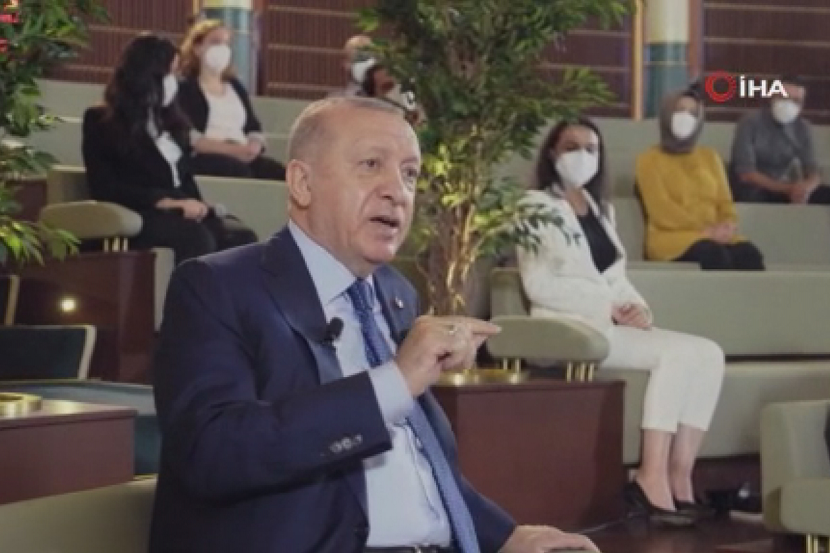 Avrupa Birliğinde kadın profesör oranının yüzde 20 olduğu, Türkiye'de bu oranın yüzde 32 oranında olduğu, bu oranın daha artıp artmayacağının sorulması üzerine Erdoğan, “Kadınlarla ilgili çalışmada attığımız adımlar gerçekten hızla ilerliyor. Bu da benim en önemli iftihar vesilemdir. Göreve geldiğimizde parlamentodaki kadın sayısı yüzde 4 civarındayken, yüzde 17 küsüre ulaştı. Bu artarak devam ediyor. Üniversitelerimizdeki öğretim üyeleri kadınlarda yüzde 50'nin üzerine çıkmış durumda. Üniversitelerdeki tüm akademik kadrolara baktığımızda kadın oranı yüzde 51'in üzerinde. Bu cumhuriyet tarihinde görülmüş değil. Hükümetlerimiz döneminde hem karar mercilerinde hem de ticaretten bürokrasiye, akademiden siyasete her alanda kadınlarımızı destekledik ve teşvik ettik. İstihdam edilen kadın sayısı 6 milyon 122 binden 8 milyon 920 bine çıkmış vaziyette. Kadınların işgücüne katılım oranı yüzde 27'den yüzde 32,5'e çıkmış vaziyette” dedi.