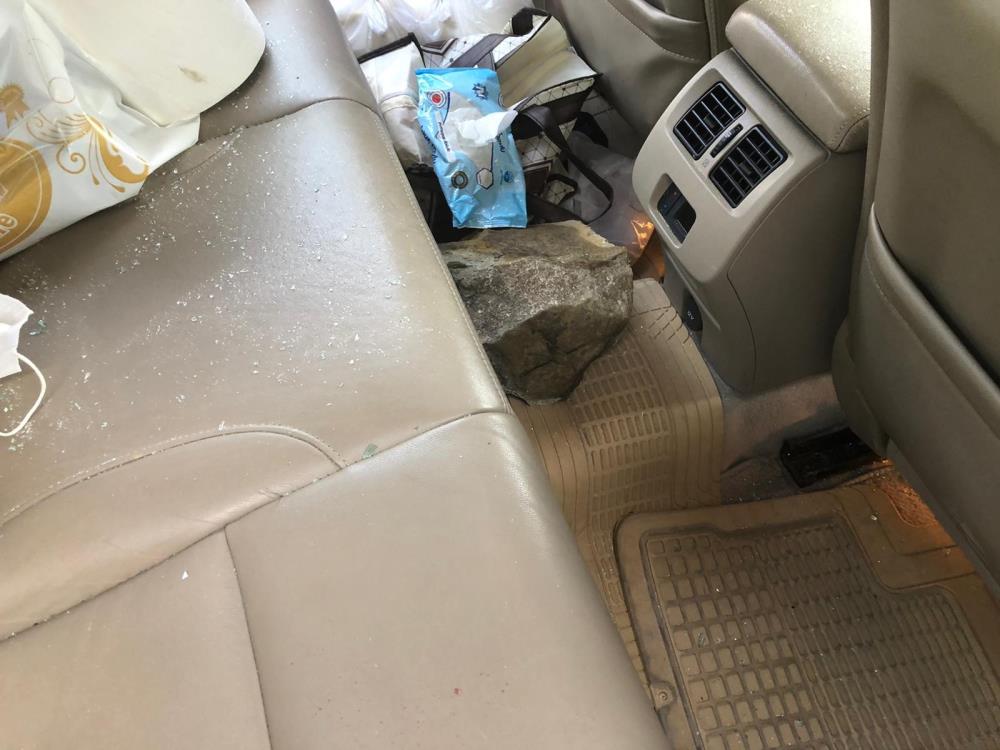 Erzincan'da, dağdan kopup seyir halindeki otomobilin camından içeriye düşen kaya parçası sürücünün yaralanmasına neden oldu.
