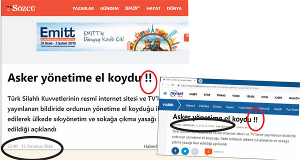 FETÖ'cü Erhan Başyurt, Akbay'a “Mynet'teki arkadaşla görüştüm. Onlar da gerekeni yayınlıyor. Gazamız mübarek ola!” demiş, Akbay da “Mynet'tekilere fazla güvenme. Bizimle iletişimde olduğumuzu söyleme” diye karşılık vermişti. “Mynet'teki arkadaş”ın sitenin kurucusu Emre Kurttepeli olduğu ortaya çıkmıştı. Akbay ve Kurttepeli'nin yazışmalarında Sözcü ve Mynet'in 15 Temmuz gecesi birlikte hareket ettiği belirlenmişti. Ele geçen yeni belgeler, iki yayın kuruluşunun daha da ileri giderek o gece ortak yayın yaptığını gösterdi.
