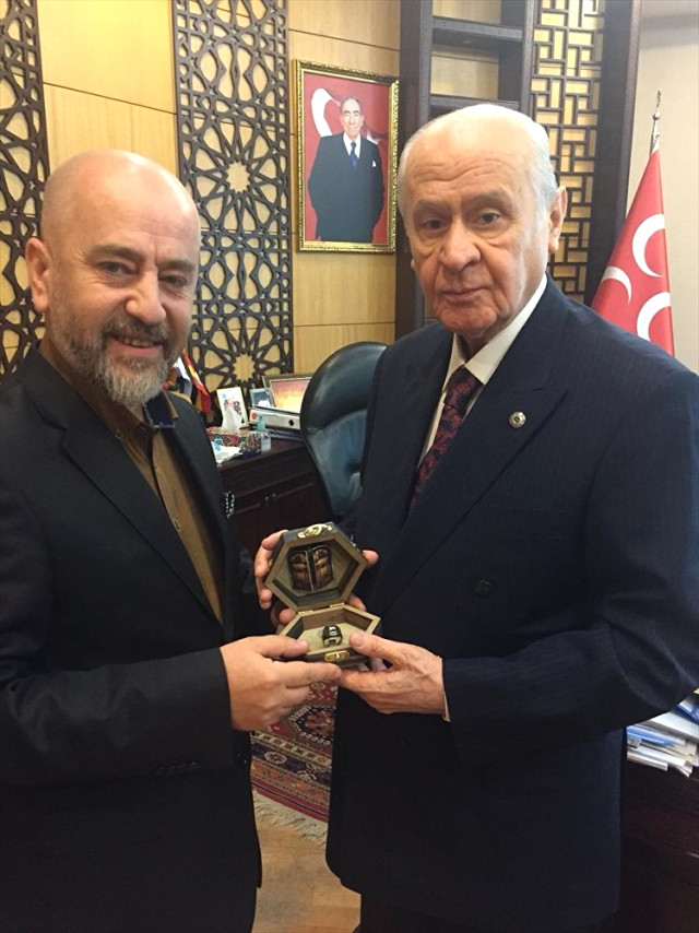 MHP Genel Başkanı Devlet Bahçeli'ye, tutkunu olduğu klasik otomobilinin figürünü taşıyan bir yüzük hediye edildi.