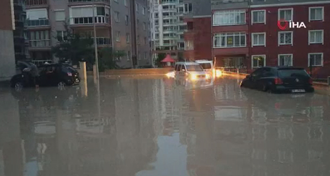 Edirne’de akşam saatlerinde etkili olan sağanak yağış yolları göle çevirdi, iş yerlerini su bastı.