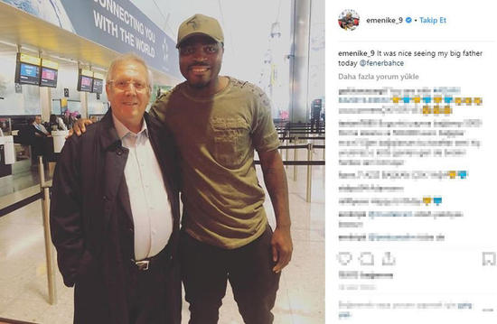 Fenerbahçe'nin eski golcüsü Emmanuel Emenike sosyal medya hesabından Aziz Yıldırım ile fotoğrafını paylaştı.