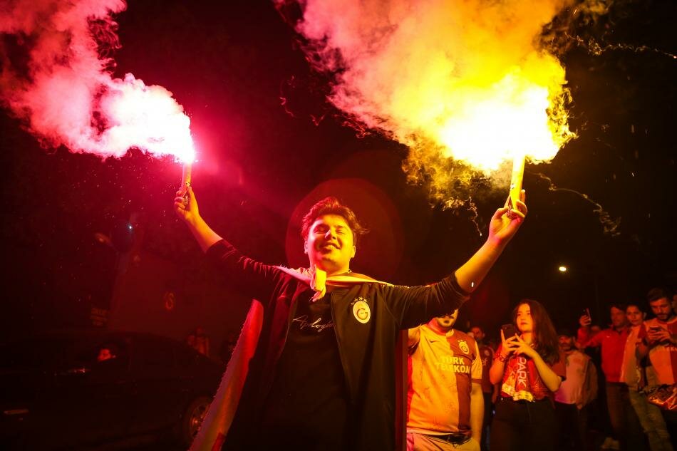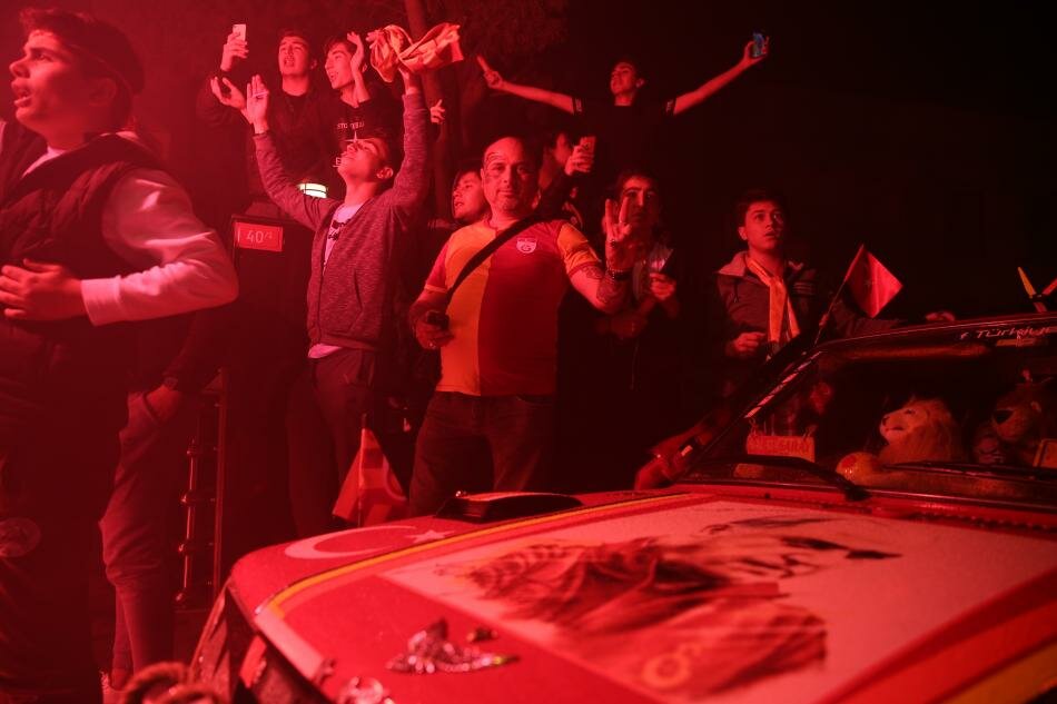 Türk Telekom Stadı'nda oynanan derbinin ardından Florya Metin Oktay Tesisleri önünde toplanan sarı-kırmızılı taraftarlar, büyük sevinç yaşadı.
