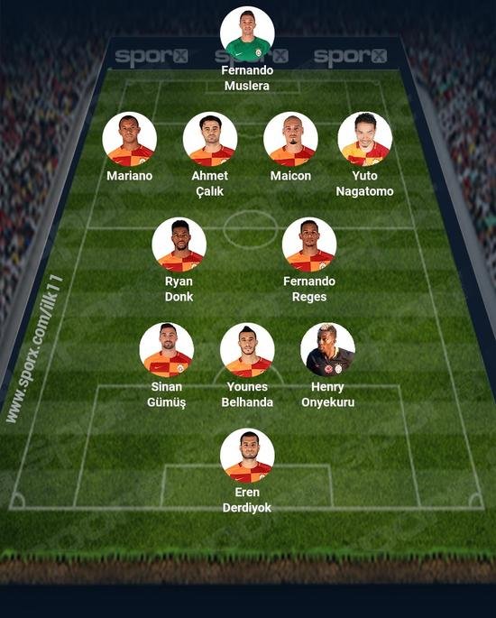 Fatih Terim, Ankaragücü ile oynanan maçta 11'de şans vermediği Sofiane Fehouli ve Bafetimbi Gomis'i yine 11'de değerlendirmedi. Tecrübeli teknik adam forvette Eren Derdiyok'a şans verdi. Ankaragücü maçında kulübede olan Belhanda ise 11'de şans buldu.