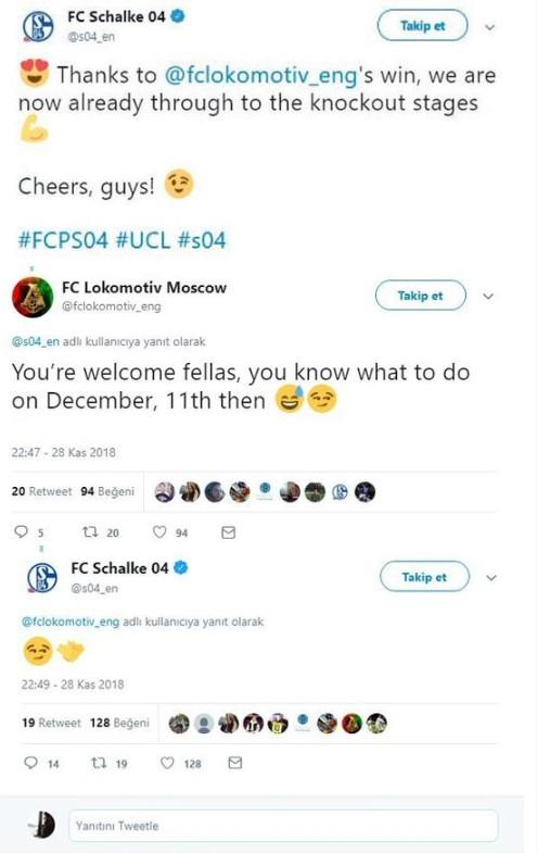 Alman ekibinin İngilizce Twitter hesabı üzerinden ilk olarak "Lokomotiv'in galibiyeti sayesinde üst tura yükseldik" mesajı paylaşılırken, Rus ekibinin İngilizce Twitter hesabından buna "O zaman 11 Aralık'ta ne yapacağınızı biliyorsunuz" şeklinde yanıt verilmişti.