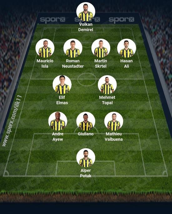 Fenerbahçe: Volkan Demirel, Hasan Ali Kaldırım, Martin Skrtel, Roman Neustadter, Mauricio Isla, Mehmet Topal, Elif Elmas, Mathieu Valbuena, Giuliano, Andre Ayew, Alper Potuk.