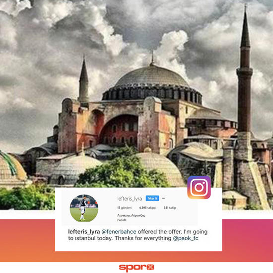 Yunanistan Ligi'ni şampiyon tamamlayan PAOK'un 19 yaşındaki sağ beki Lefteris Lyratzis, Instagram hesabından Fenerbahçe'ye transfer olacağını açıklayarak şaşırtan bir paylaşım yaptı. Genç futbolcu, Instagram hesabından Ayasofya'nın fotoğrafını paylaşırken ''Fenerbahçe'den t.