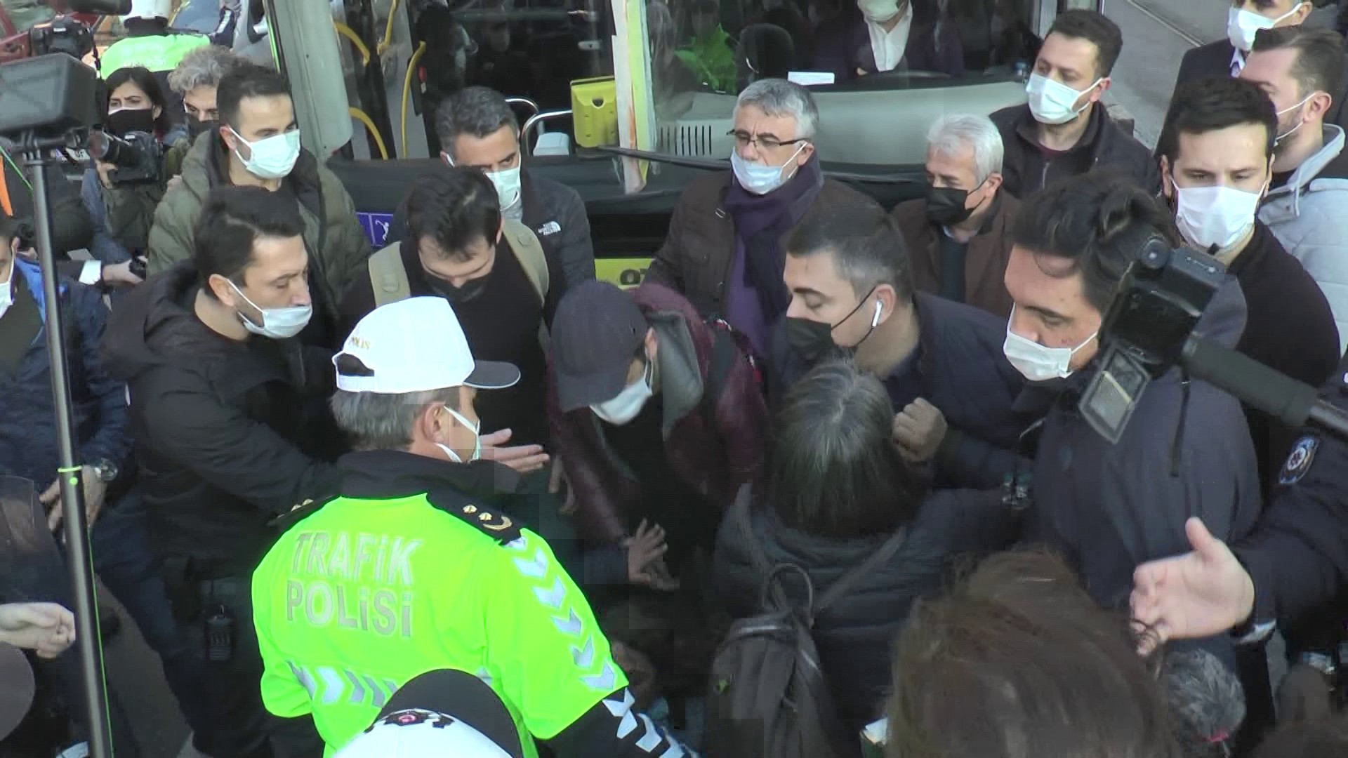 Kadıköy’de Boğaziçi Üniversitesi’ne rektör atanması ile ilgili dün akşam yapılan eylemde, yasağı delmek için dokunulmazlığını kullanmayı düşünen HDP'li vekiller belediye otobüsünün önüne oturarak eylem yaptı.