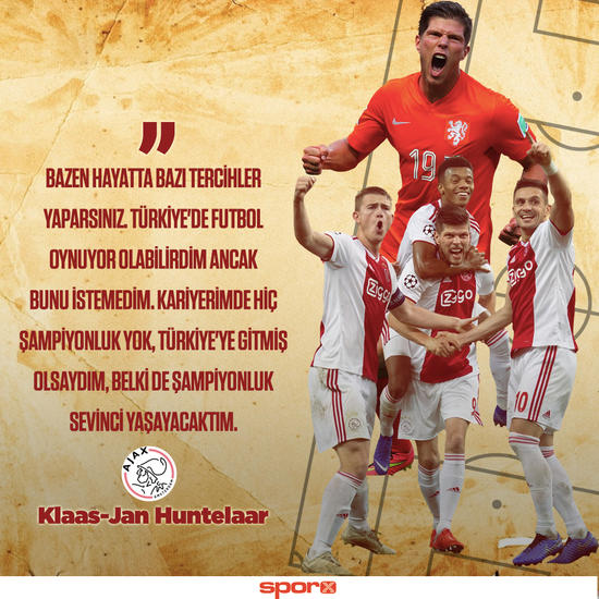 Ajax forması tecrübeli golcü Klaas-Jan Huntelaar, Hollanda'ya geri dönmeden önce Türkiye'ye de gidebileceğini ancak tercih etmediğini söyledi. Kariyerinde oynadığı Real Madrid, Milan ve Ajax takımlarıyla hiç şampiyonluk yaşamadığı hatırlatılan Huntelaar, Türkiye'ye gelmesi dur.