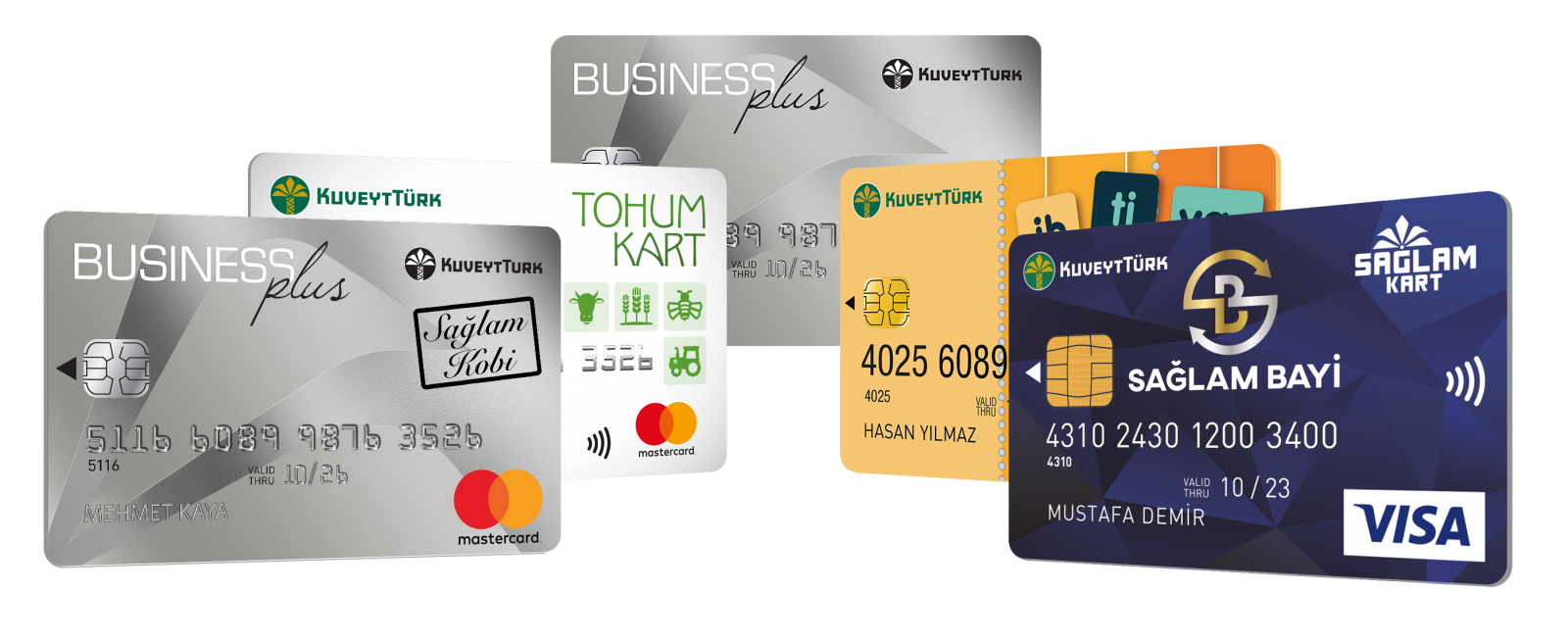 Kuveyt Türk, farklı sektörlerde hizmet veren ticari işletmeler için geliştirdiği özel kartlarla da müşterilerine rahat nefes aldırıyor. Esnaftan çiftçiye, işletme sahibinden bayilere kadar her kesimin ihtiyaçlarına özel kartlar sunan Kuveyt Türk, esnek ödeme planlarıyla işletmelerin yüzünü güldürüyor. İşletmelere özel kartlar arasında öne çıkıyor.