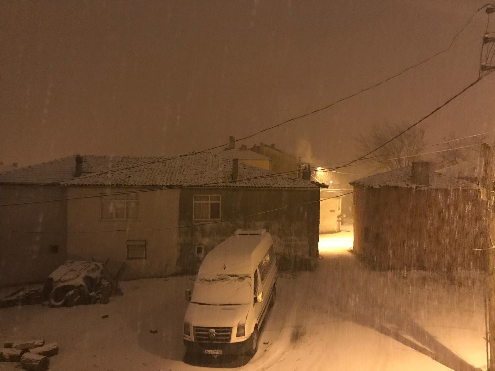 İstanbul Çatalca, akşam saatlerinde etkisini gösteren kar yağışıyla beyaza büründü.