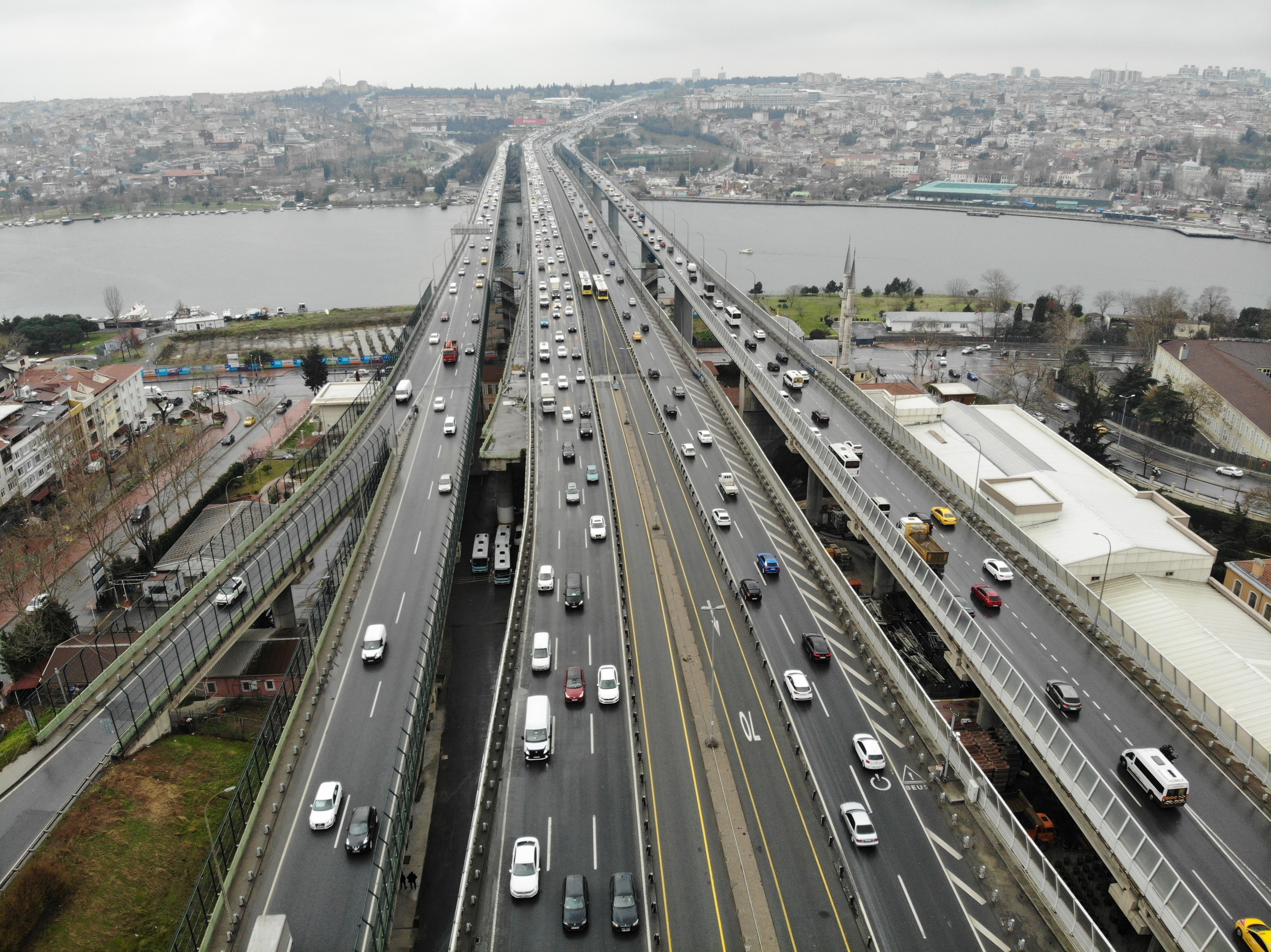 İstanbul’da kısıtlamasız ilk Cumartesi gününde trafik yüzde 78’lere kadar çıktı. Haliç Köprüsü’nde durma noktasına gelen trafik ise drone ile havadan görüntülendi.
