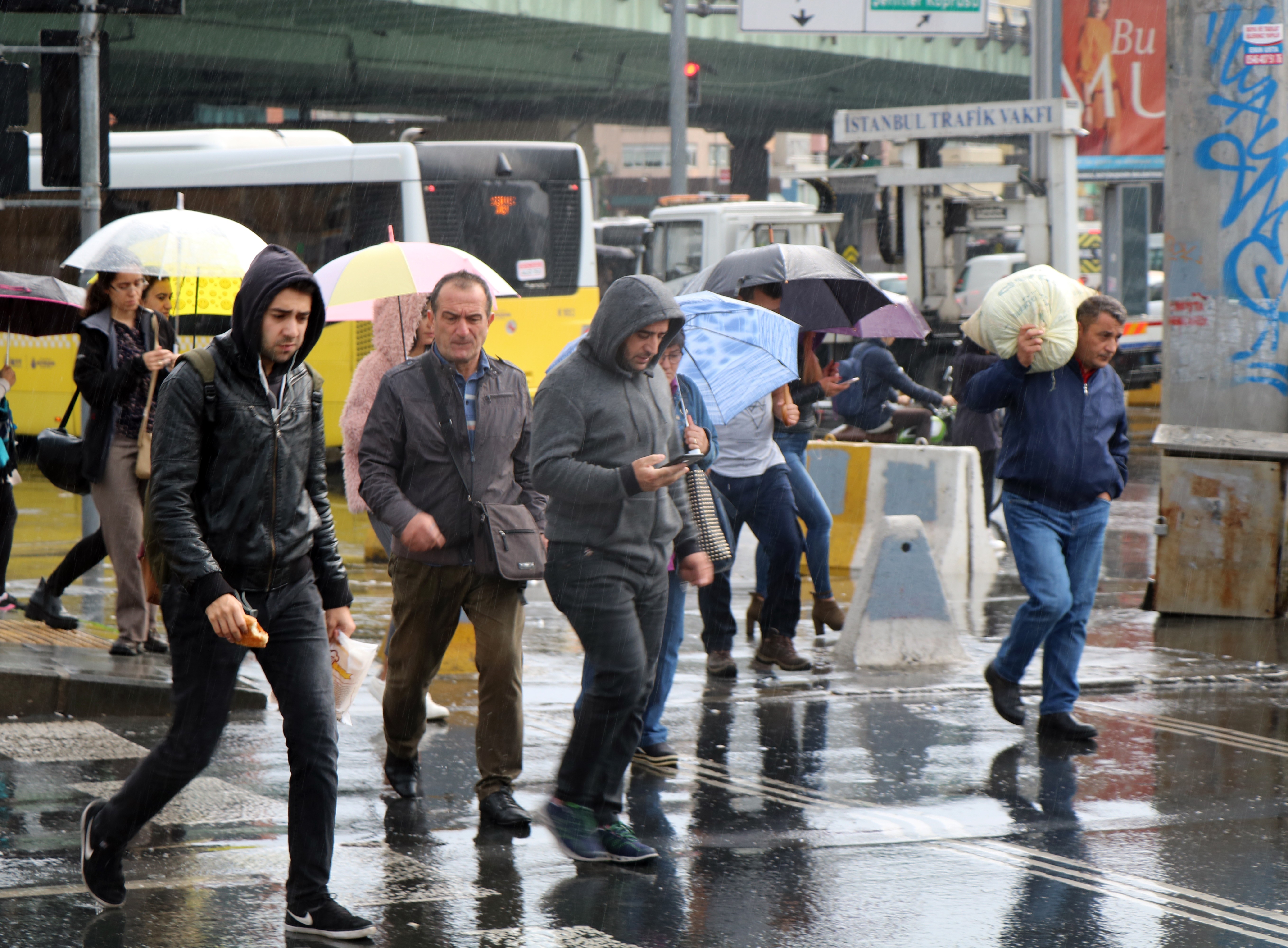 İstanbul'da gece saatlerinde başlayan yağmur sabah saatlerinde de etkisini göstermeye devam etti. Yağmurla birlikte etkili olan rüzgar, zaman zaman İstanbullulara zor anlar yaşattı.