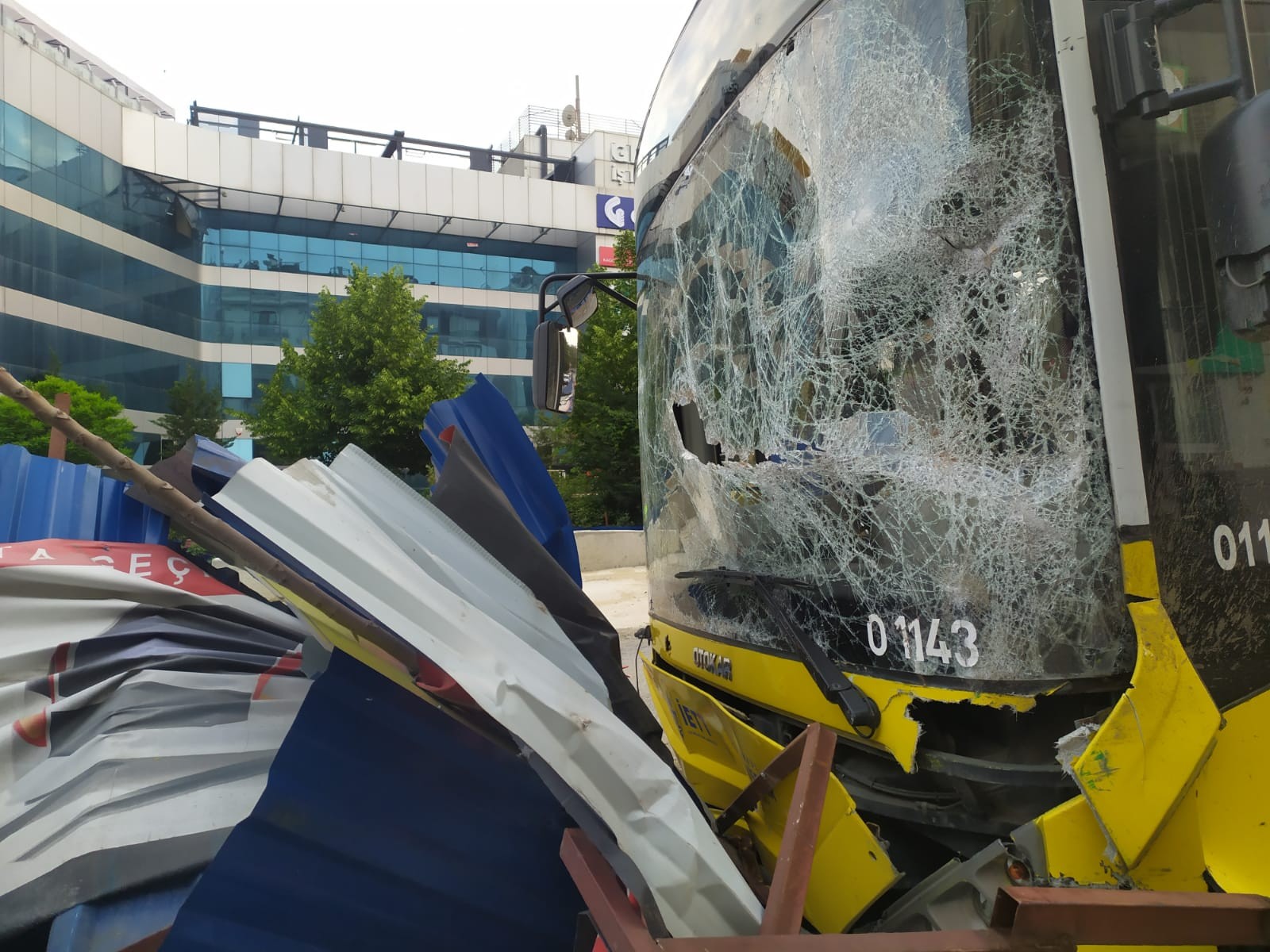 Kağıthane'de freni boşalan İETT otobüsünün metro inşaatı bariyerlerine çarptığı anlar güvenlik kameralarına yansıdı.