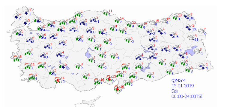 15 OCAK SALI İSTANBUL HARİTALI HAVA TAHMİNİ