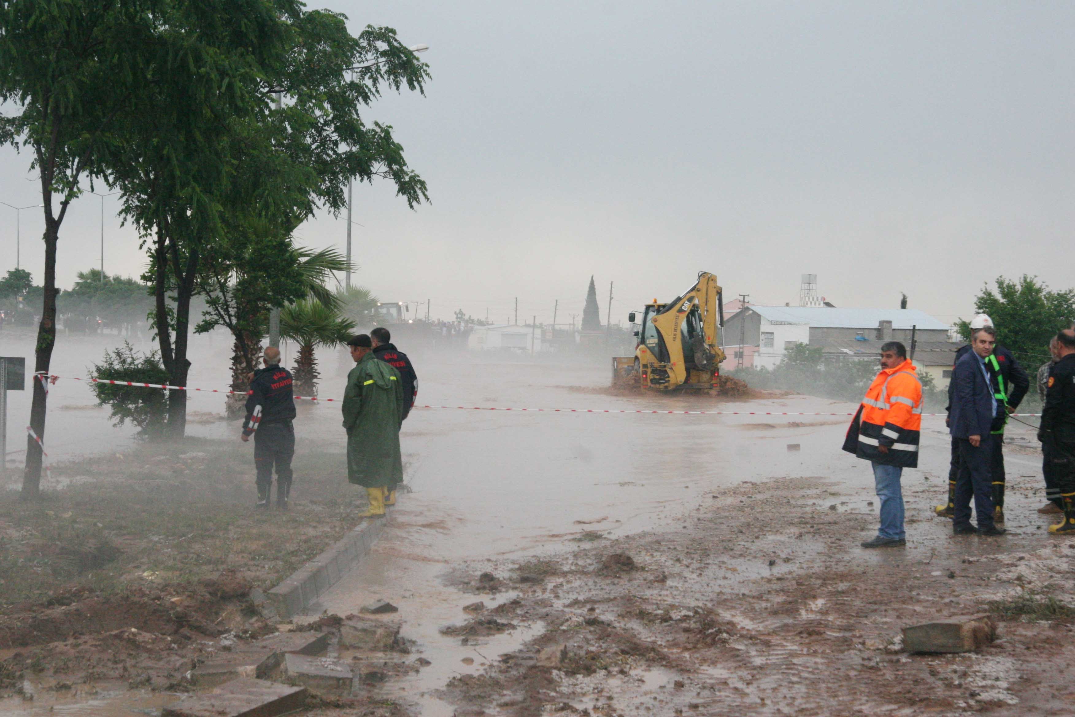 Kilis - Gaziantep karayolunun Söğütlüdere mevkiinde sel nedeniyle birçok araç ve vatandaş mahsur kaldı. Bölgeye sevk edilen polis ekipleri tarafından güvenlik çemberi oluşturulurken, AFAD, arama kurtarma ve itfaiye ekipleri ise araçlarında mahsur kalan selzedeleri kurtarmak için çalışma başlattı. Sağlık ekiplerinin sel suları nedeniyle ulaşmakta güçlük çektiği selzedeler, iş makineleri ve kurtarma ekiplerinin desteği ile afet bölgesinden çıkarılıyor.