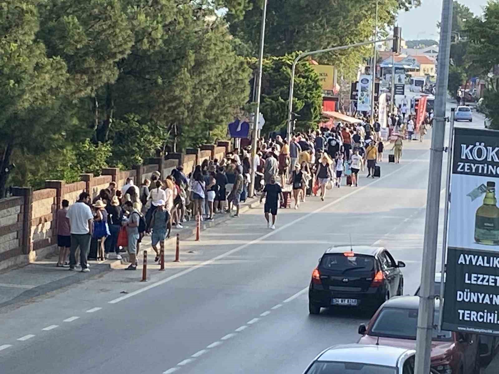 Kurban Bayramı tatilini Yunanistan’ın Midilli Adası’nda geçirmek isteyen tatilciler, Ayvalık Deniz Hudut Kapısı önünde yoğunluk oluşturdu.