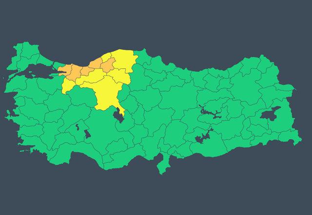 Meteoroloji, Kocaeli, Sakarya, Düzce, Zonguldak ve Karabük için turuncu, Bilecik, Bolu, Çankırı, Ankara, Kastamonu ve Bartın için sarı uyarıda bulundu.
