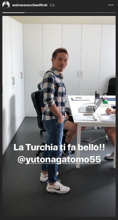 Mavi-siyahlı ekipten takım arkadaşı Andrea Ranocchia, sosyal medya hesabından yaptığı paylaşımda: "Türkiye seni güzelleştirmiş" yazısı ile Nagatomo fotoğrafı paylaştı.