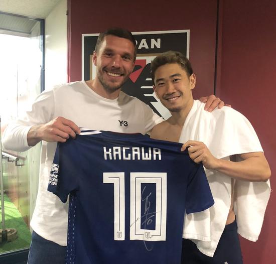 Kagawa, kariyerine Japon ekibi Vissel Kobe'de devam eden Podolski'ye Bolivya maçında giydiği formayı imzalayarak hediye etti.