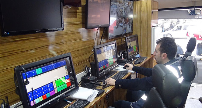 Yeni yıla saatler kala İstanbul Emniyet Müdürlüğü ekipleri, Taksim'e kurulan MOBESE canlı yayın tırından tüm meydanı ve çevreyi olabilecek olumsuzluklara karşın izliyor.