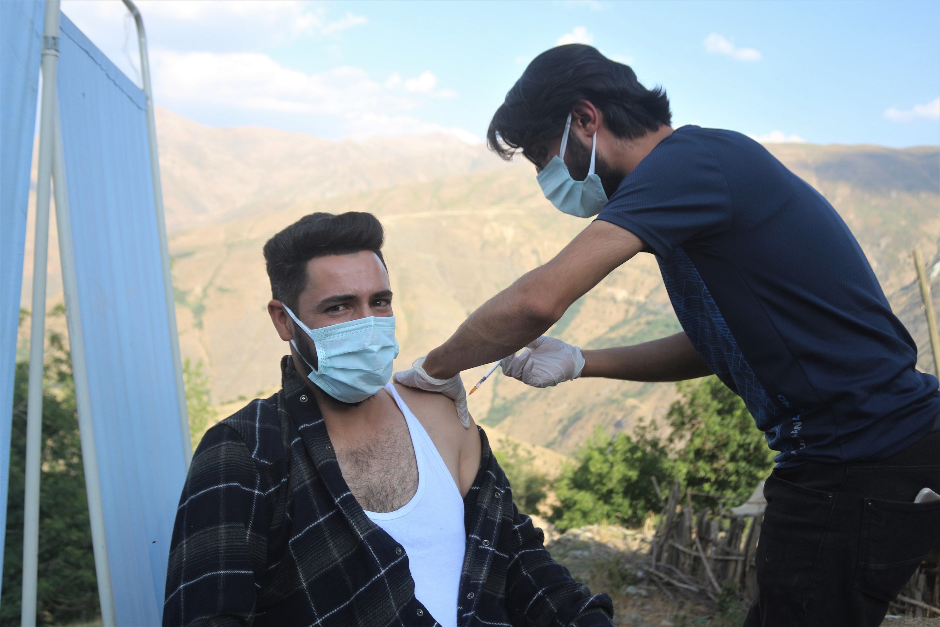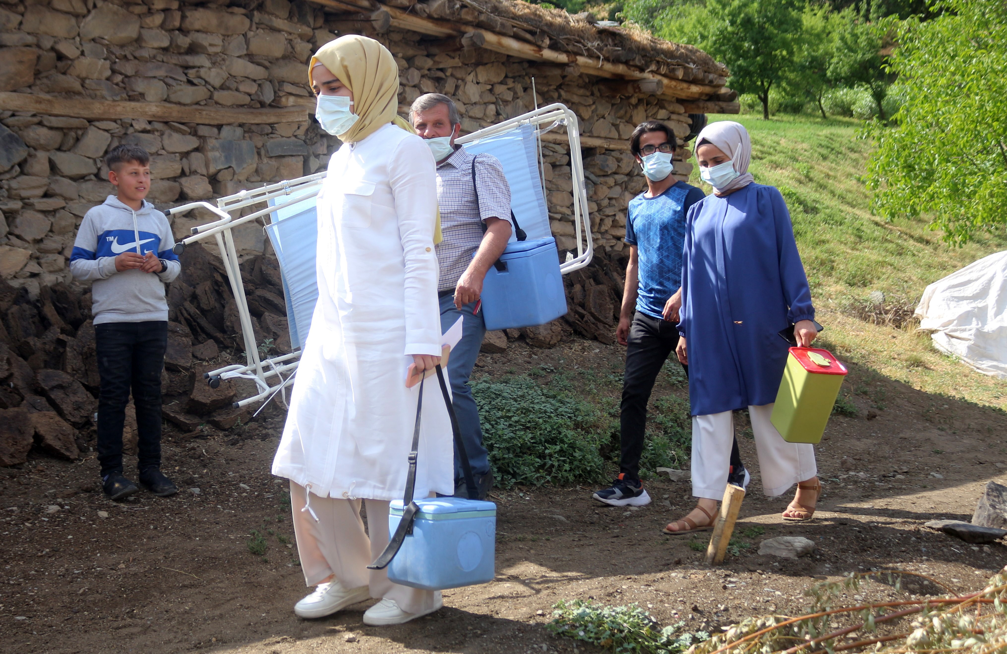 Sağlıkçılar dağ bayır demeden patikaları aşarak aşı yapıyor