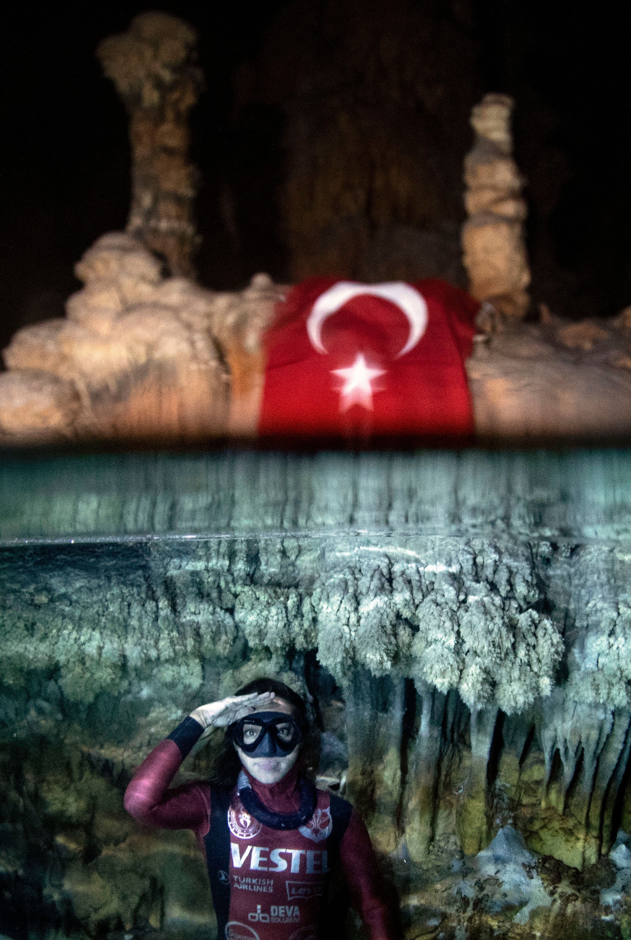 Dünya dalış rekortmeni Şahika Ercümen, Mersin’de buzul döneminden kalıntılar taşıyan Gilindire Mağarası'na dalış yaparak, mağara dalışında kadınlar paletsiz dünya rekorunu kırdı.
