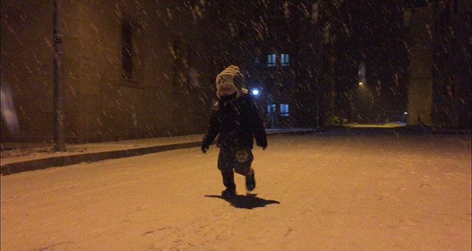 Sarıkamış’ta etkili olan kar yağışı bir anda etrafı beyaza bürüdü.