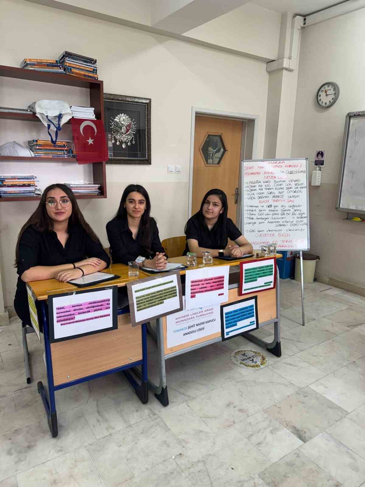 Kayseri’de tüm liselerin katılımı ile gerçekleşen ’Liseler Arası Münazara Yarışması’nda, Tomarza Şehit Nazmi Kapucu Anadolu Lisesi rakiplerini eleyerek yarı finale yükseldi.