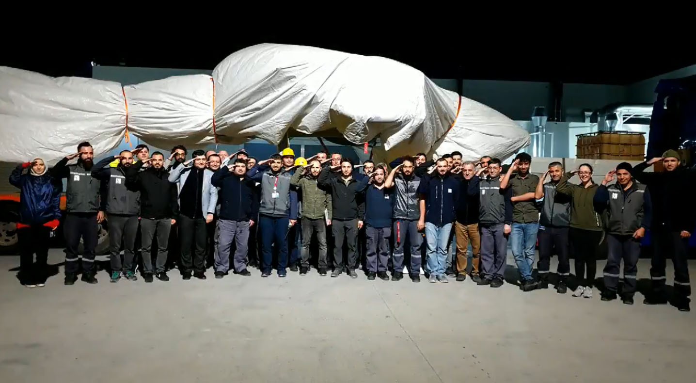 Selçuk Bayraktar, AKINCI’nın uçuş testleri için piste çıkış aşamasını paylaştı. Üzeri branda ile örtülen AKINCI’nın yanında tüm ekip asker selamı verdi.