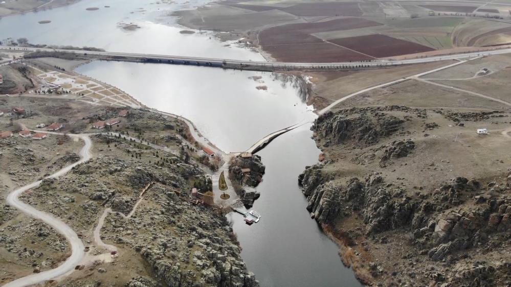 Kırıkkale’de yerli ve yabancı turistlerin akın ettiği Selçuklu yadigarı Çeşnigir Köprüsü ve Kanyonu’nda hafta sonları sokağa çıkma kısıtlaması nedeniyle yaşanan tarihi sessizlik, havadan görüntülendi.