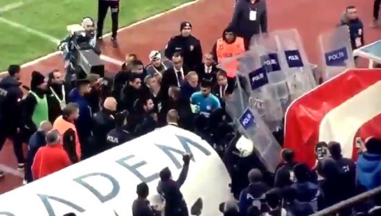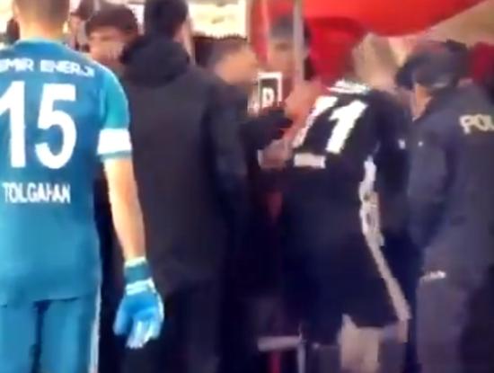 Süper Lig'de oynanan Demir Grup Sivasspor - Beşiktaş maçının ilk yarısının son düdüğünün ardından iki takım da soyunma odasına yönelirken Burak Yılmaz'ın kafasına yabancı madde atıldı. Burak Yılmaz, soyunma odasına giderken başına aldığı madde nedeniyle tünelin giriş.