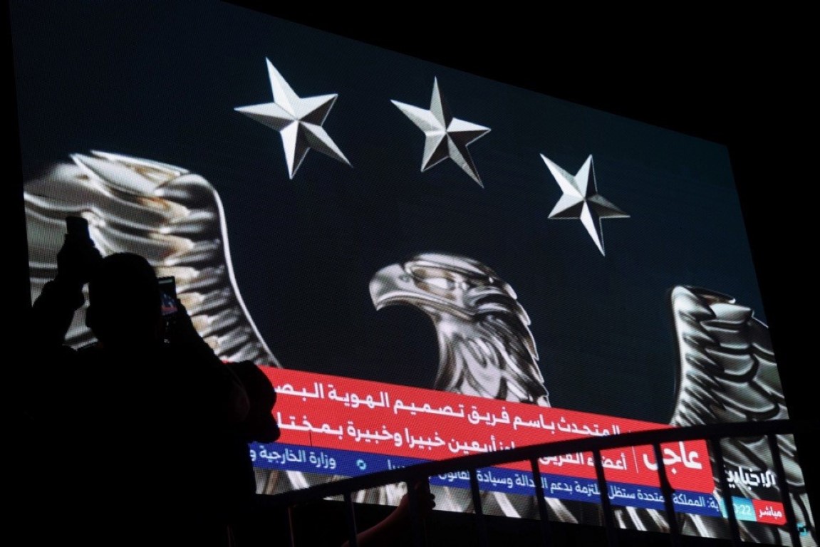 Yeni logoyu Suriye Devlet Başkanı Ahmed eş-Şara Başkanlık Sarayı'nda düzenlenen törenle tanıttı. Törende konuşan eş-Şara, "Suriye, kadim bir ülke ve medeniyetlerin beşiğidir. Bu nedenle her zaman istilacıların hedefi oldu. Ama bugün yeni bir dönem başlıyor. Bu yırtıcı kuş, yeni logomuz gücü, kararlılığı, zekâyı ve halkını koruyan bir ruhu temsil ediyor. Onun parlak metalik rengi, halkımızın sağlam karakterini simgeliyor" dedi. Eş-Şara yeni kimliğin tüm mezhep, din ve etnik yapılarla uyum içinde bir birlik mesajı taşıdığını belirterek, "Gençlerimize teşekkür ediyorum; zor şartlara rağmen çalıştılar ve başardılar. Bu başarı, şehitlerimizin fedakârlıkları sayesinde mümkün oldu" ifadesini kullandı. Devlet Başkanının konuşması dev ekranlarda canlı olarak yayınlandı.